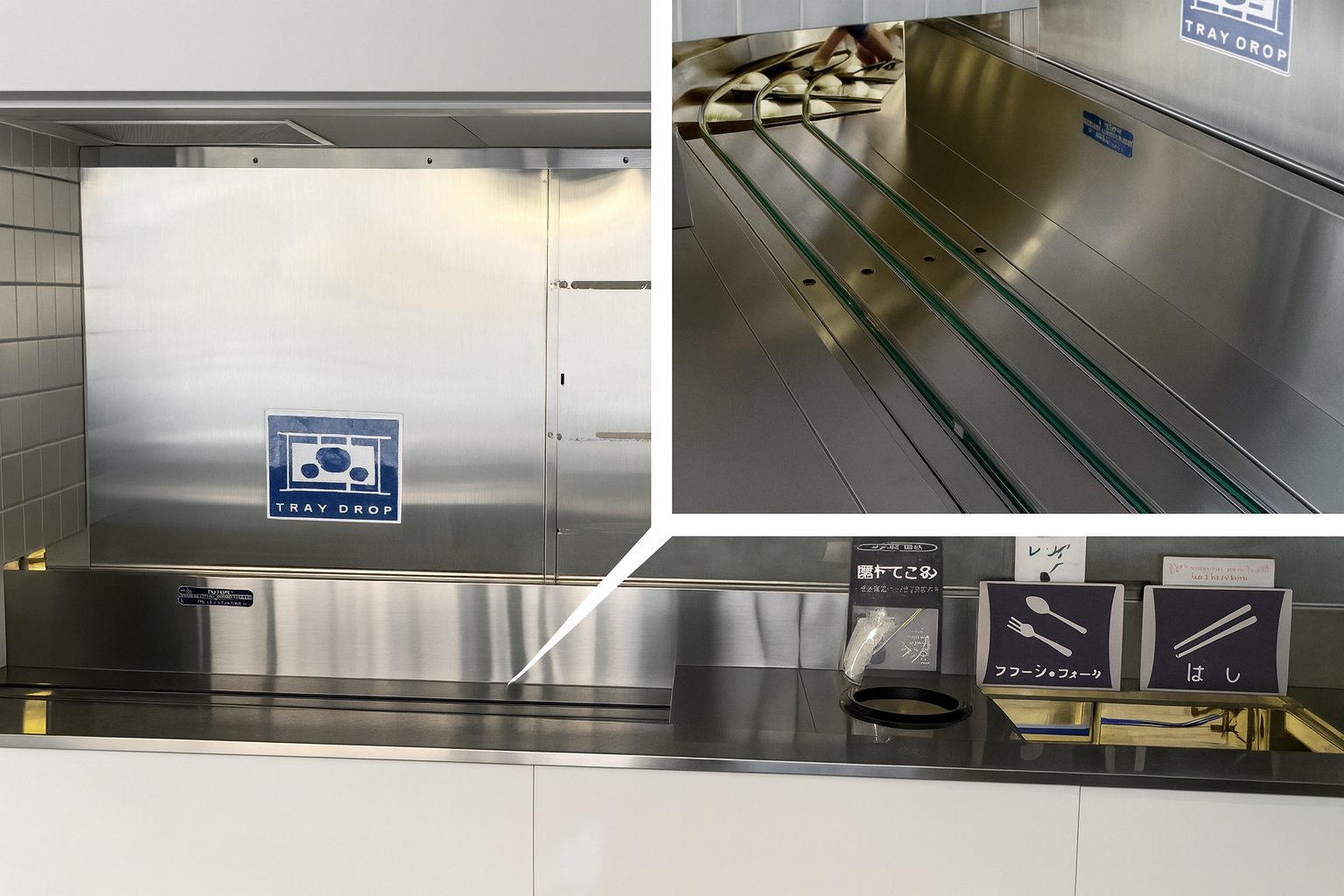 トレー返却口がいつでもスッキリと清潔な状態に保たれます。